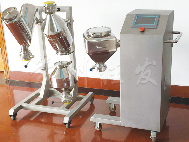 本機是我司廣泛吸收、消化國外技術(shù),結(jié)合國情研發(fā)成功的新機型。本機結(jié)構(gòu)合理,性能穩(wěn)定,操作方便,整機無死角,無外露螺釘。回轉(zhuǎn)體(混合料斗)與回轉(zhuǎn)軸曲線成30度夾角,混合料斗中的物料隨回轉(zhuǎn)體時沿斗壁做切向運動,產(chǎn)生強烈的翻動和高速的切向運動,從而達到好的混合效果,采用PLC全自動控制,并設(shè)置防誤操作裝置的出料蝶閥,確保生產(chǎn)安全。物料可在同一容器中通過不同的工序段,不需要頻繁地轉(zhuǎn)料,加料等程序。有效地控制粉塵與交叉污染,減少物料的損失,控制物料的分層,優(yōu)化了生產(chǎn)工藝,符合藥品生產(chǎn)的GMP要求。